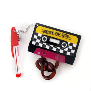 parure freddie mercury e corona indossata con orecchini, collane e spilla in plexiglass colorato