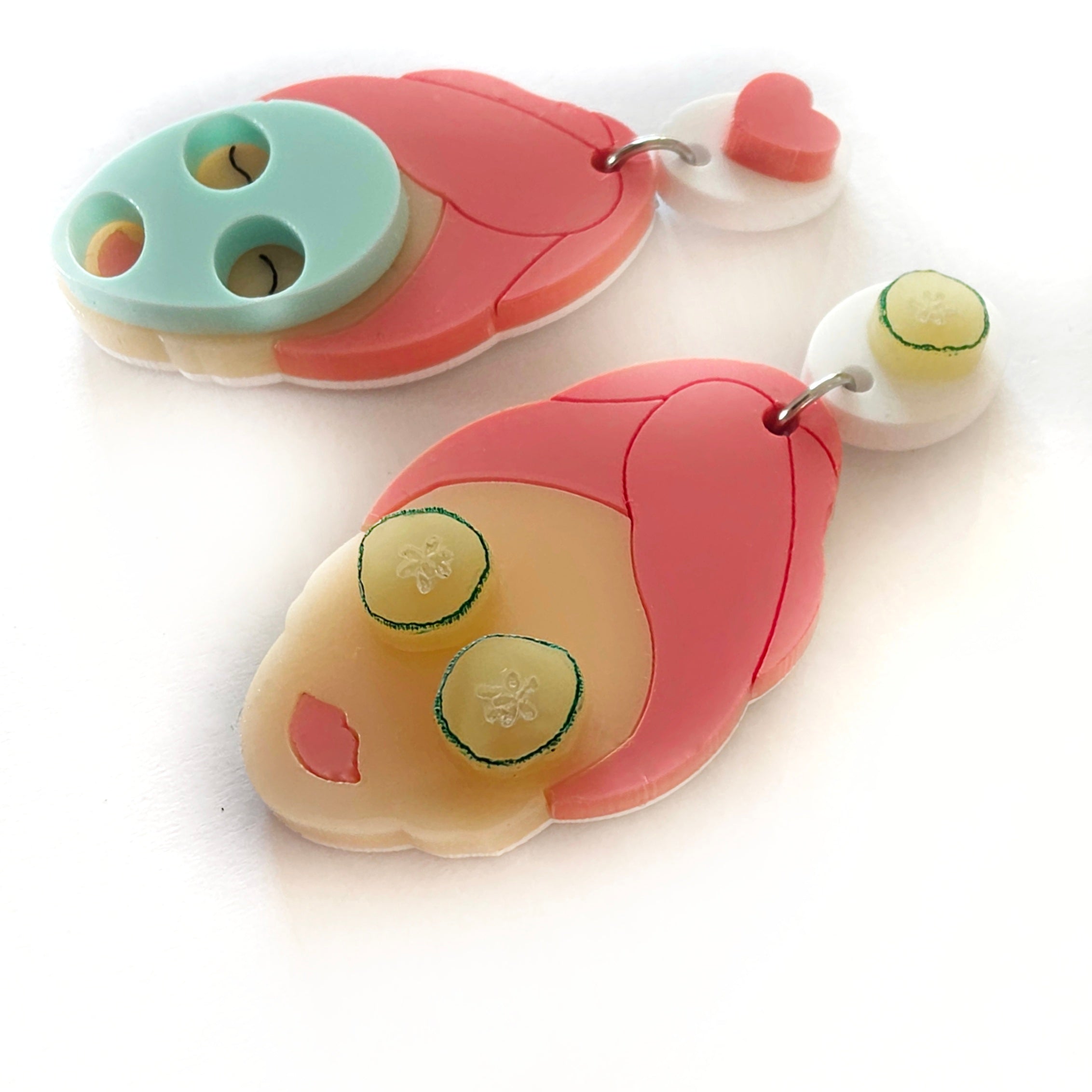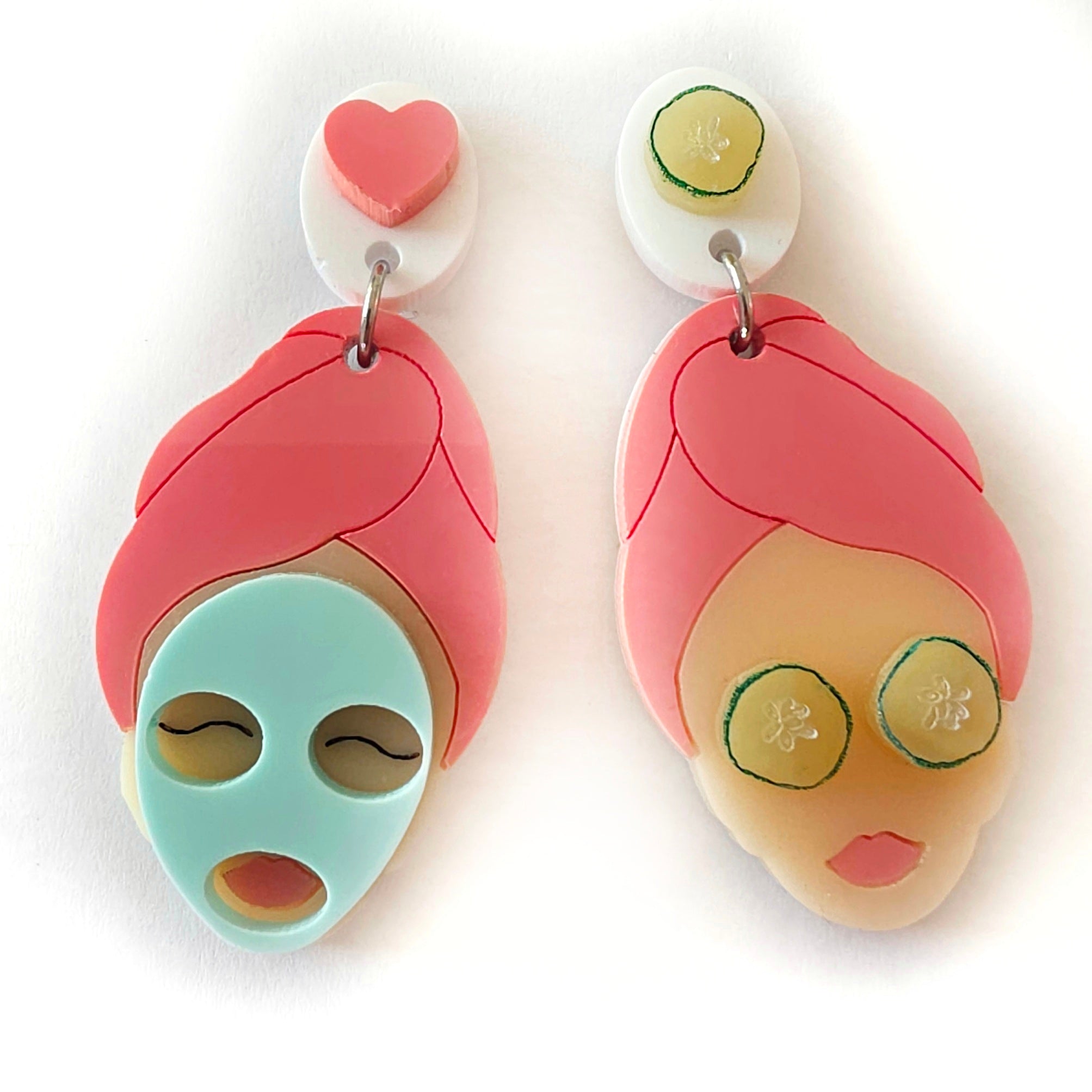The earrings are customizable in the colors you prefer — you can change the color of the towel or the mask.