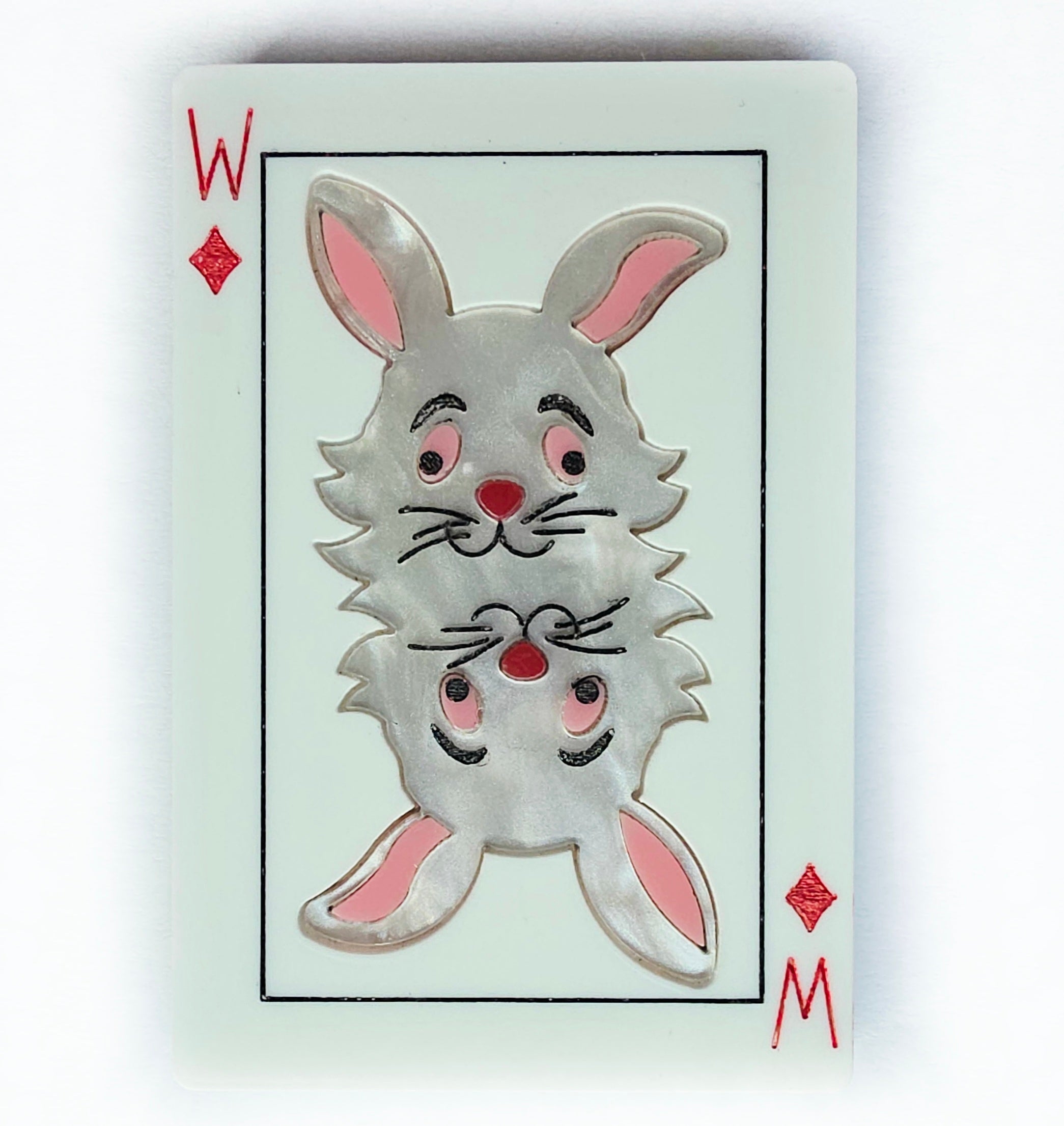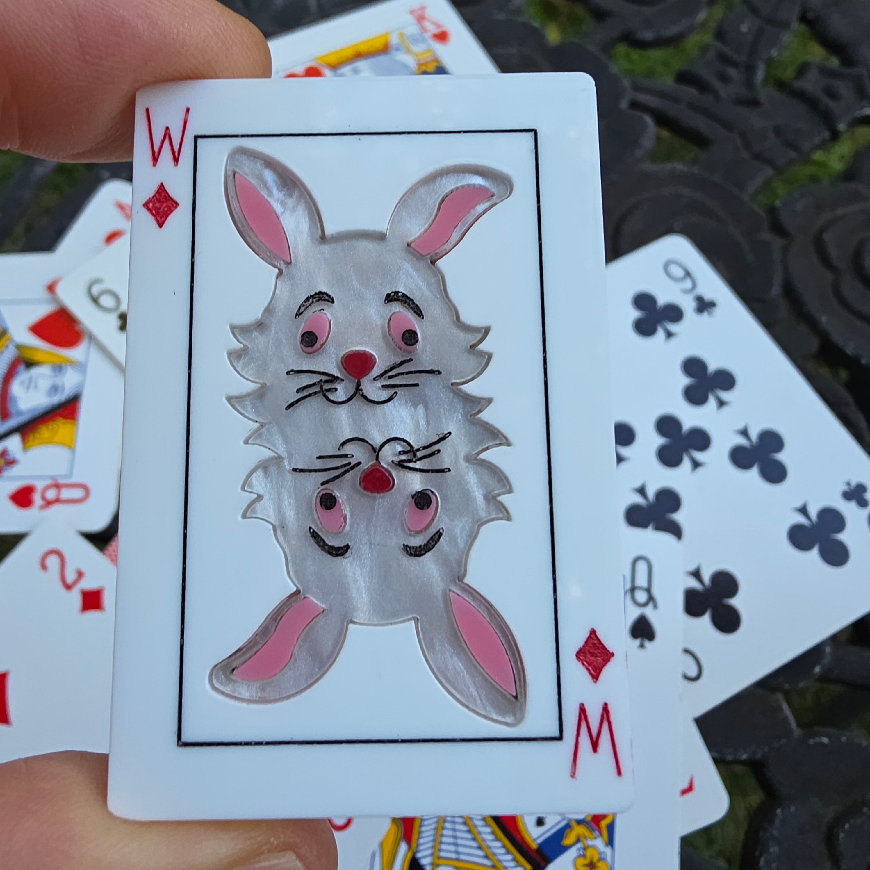 White Rabbit playing card brooch