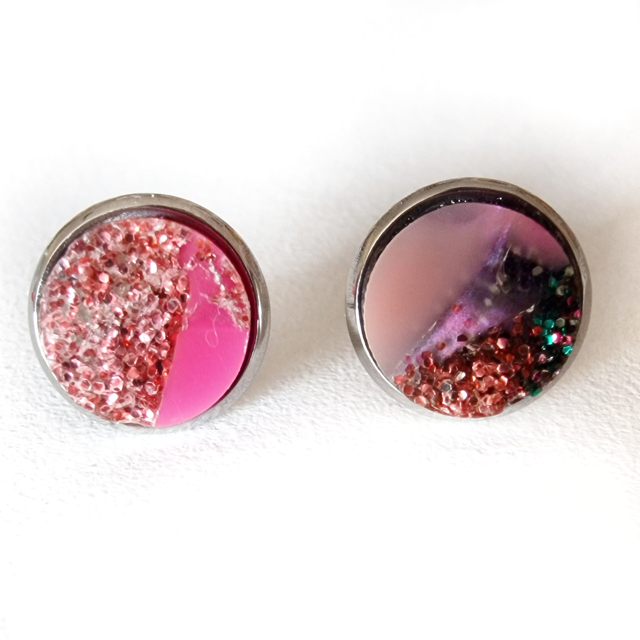 Unique and one-of-a-kind stud earrings, handcrafted from recycled acrylic in my studio using leftover pieces from laser cutting.