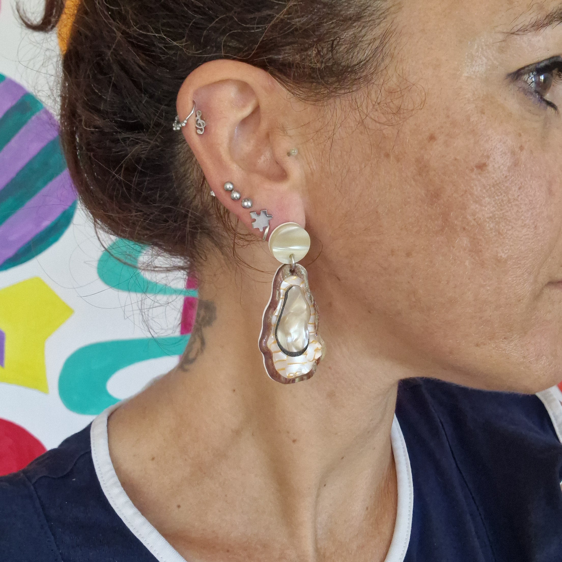 Gli orecchini misurano 6 cm e sono piegati e modellati a mano.